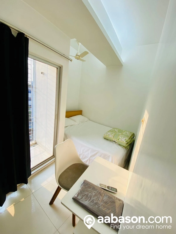 Two-Room Furnished Serviced Apartments Available in Bashundhara R/A. Short-Term Rentals with Kitchen, TV, Refrigerator, WiFi, Microwave oven, A/C.