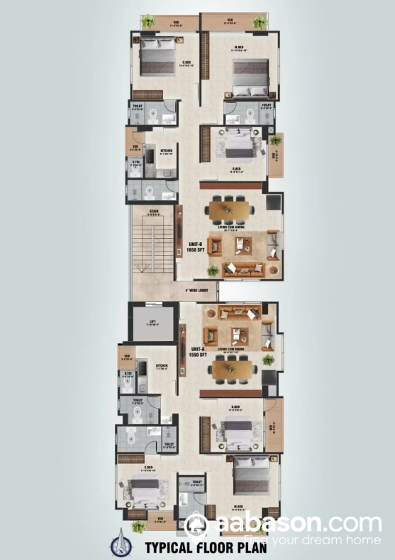 📐 Apartment Size: 1550 – 1650 sq. ft.