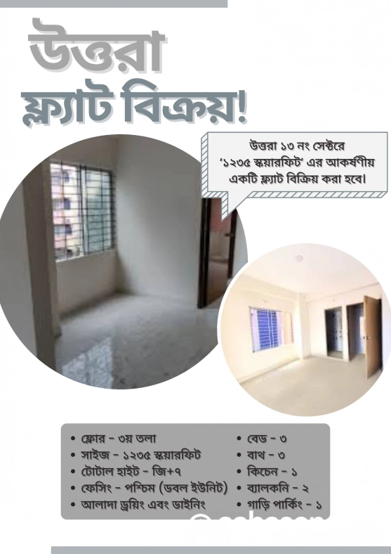 উত্তরাতে একটি আরামদায়ক এবং সুন্দর স্থানে ফ্ল্যাট খুঁজছেন? এই ফ্ল্যাটটি আপনার জন্য উপযুক্ত হতে পারে! আধুনিক সুবিধা এবং সুবিধাজনক লোকেশন সহ এই 1235 বর্গফুটের ফ্ল্যাটটি একটি আরামদায়ক জীবন যাপনের স্থান।