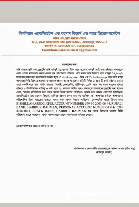 - ✅ মূল্য: প্রতি বর্গফুট ১৫,৭০০.০০ টাকা
