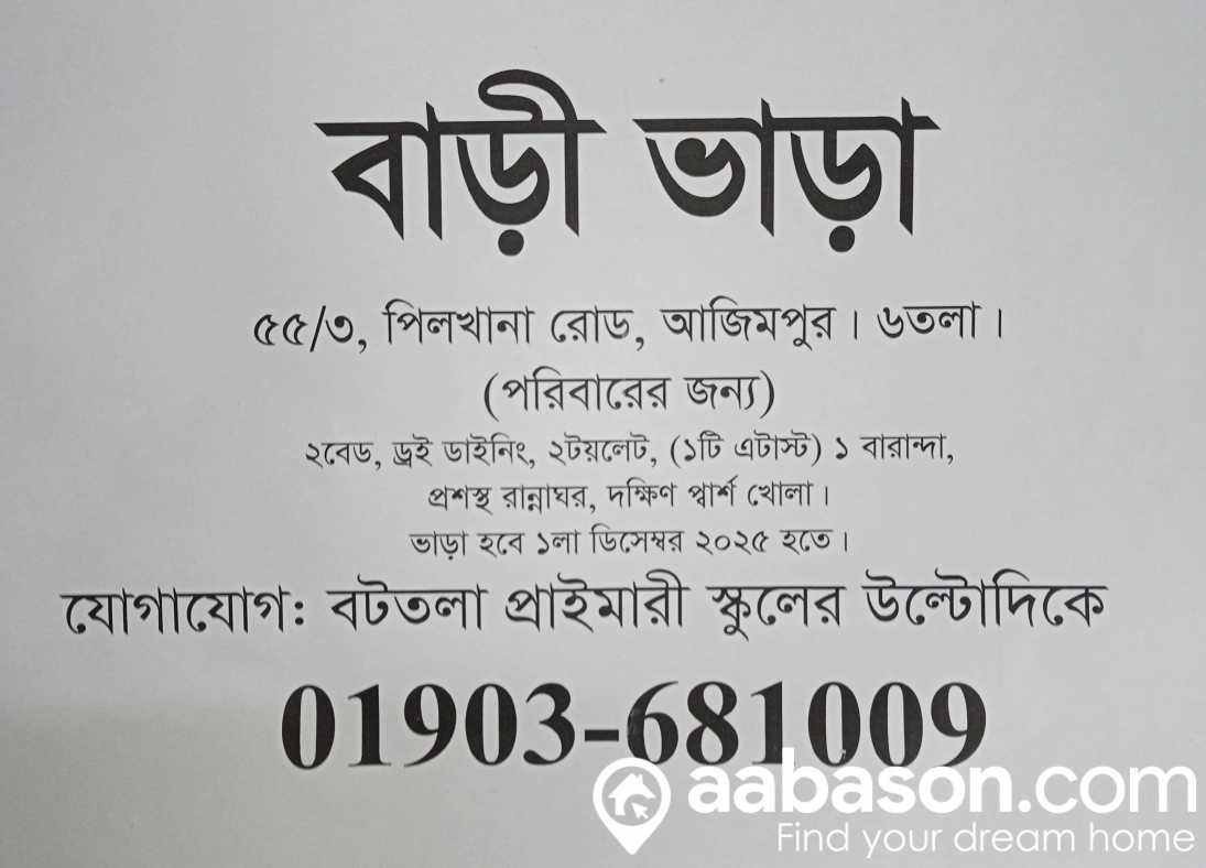 2 Bedroom Flat for Rent in Azimpur Dhaka