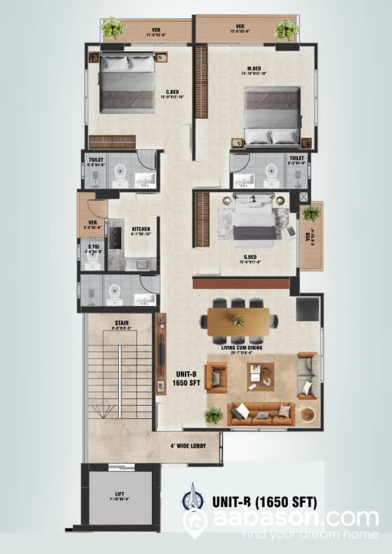 - আকার: ১৬৫০ বর্গফুট